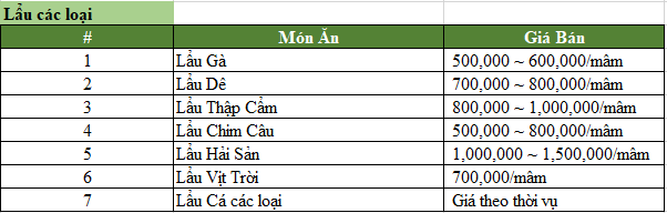 Bạn cũng có thể tham khảo danh sách menu dưới đây để lên ý tưởng trước cho buổi liên hoan của bạn!